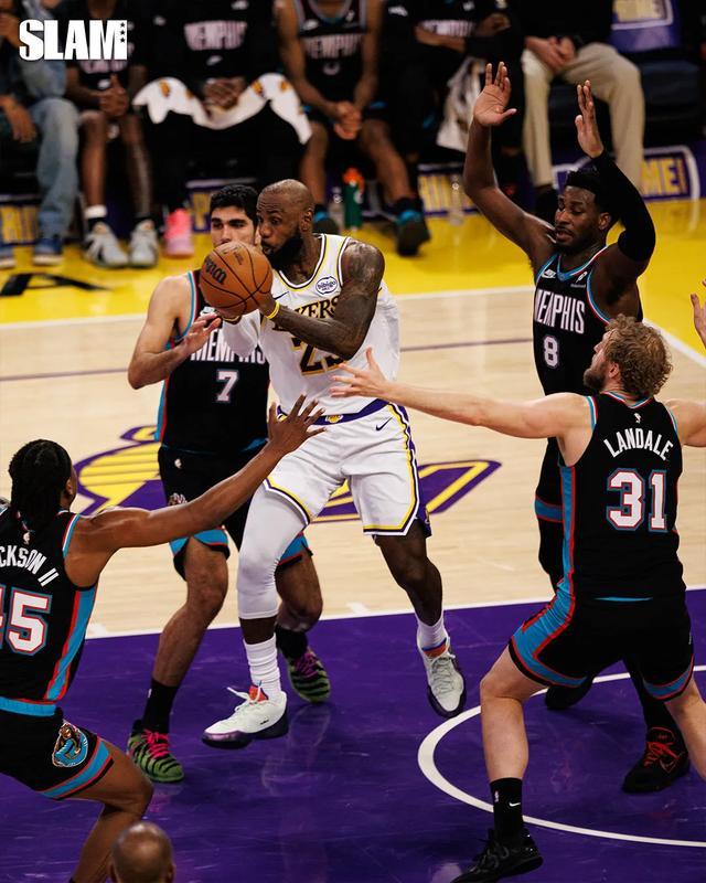 在关键时刻,湖人就是把球交给东契奇和詹姆斯处理,两人之间也会打挡拆,对手上夹击的时候两个人总是能在第一时间破解形成多打少,成功率非常高。这就是有两个巨星的魅力,你可以在进攻端完全交给他们处理,而湖人能够在最后时刻处理球的人实际上有三个。