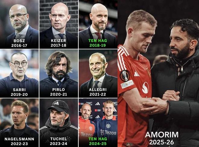 自开启职业生涯以来,德里赫特每到新赛季几乎都会迎来一位新帅。从阿贾克斯到尤文图斯,再到拜仁慕尼黑、切尔西,如今又来到曼联,他合作过的教头包括皮尔洛、萨里、阿莱格里、纳格尔斯曼、图赫尔、滕哈赫,以及刚刚下课的阿莫林——无一例外,这些教练在他效力期间都经历了动荡、下课或离任。