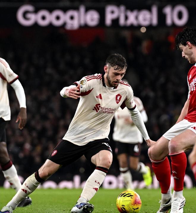 客场作战斯洛特不仅摆出无锋阵,更是早早摆下防守态势,除了放弃球权让阿森纳半场进攻演练,这让利物浦上半场几乎没有获得什么像样的进攻镜头;不过阿森纳的也没有制造出什么太多的进攻机会。第15分钟,赖斯斜长传,廷贝尔头球点到门前被解围;第26分钟,赖斯上抢失败,布拉德利直传反击,弗林蓬直塞禁区,拉亚弃门而出解围,布拉德利禁区外围果断起脚吊射,可惜被门柱拒绝;利物浦在斯洛特治下英超已有31次射门中框,为同期所有球队最多。